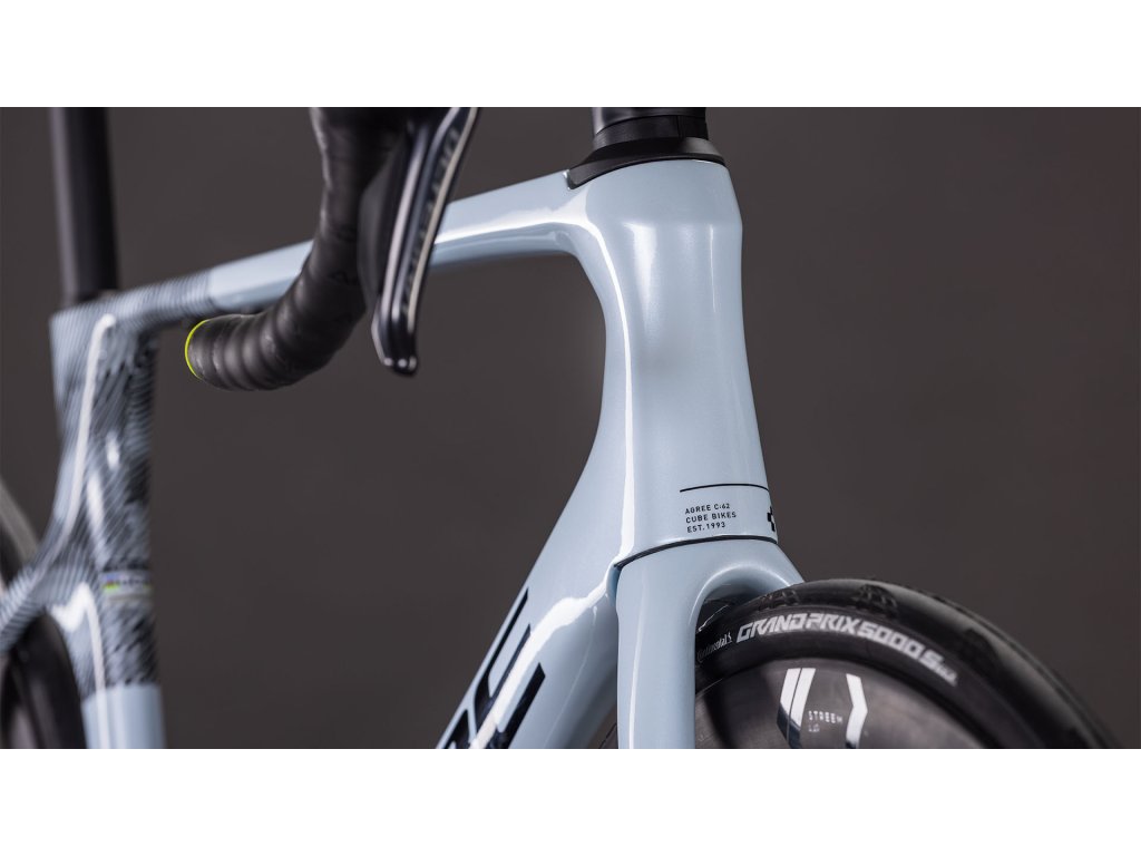 Existuje dôvod, prečo rýchle cestné bicykle aj vyzerajú rýchlo: všetka tá aerodynamická pozornosť venovaná detailom skutočne ZABEZPEČUJE rýchlosť. Vďaka integrovanému riadidlu a pokročilému vnútornému vedeniu káblov má Agree C:62 v tejto oblasti náskok. Pridajte starostlivo profilované tvary rúrok – zdokonalené našimi skúsenosťami s výrobou špičkových časovkárskych a cestných pretekárskych bicyklov – a máte doslova víťaza. Starostlivé vrstvenie uhlíkových vlákien a štíhle vzpery zaručujú pohodlie aj na dlhších jazdách, a 32 mm priestor medzi rámom a kolesami poskytuje dostatok miesta pre širšie a rýchlejšie pneumatiky. A nezabudli sme ani na úložný box namontovaný na ráme, takže si so sebou môžete vziať jedlo, náradie alebo ďalšiu vrstvu oblečenia.