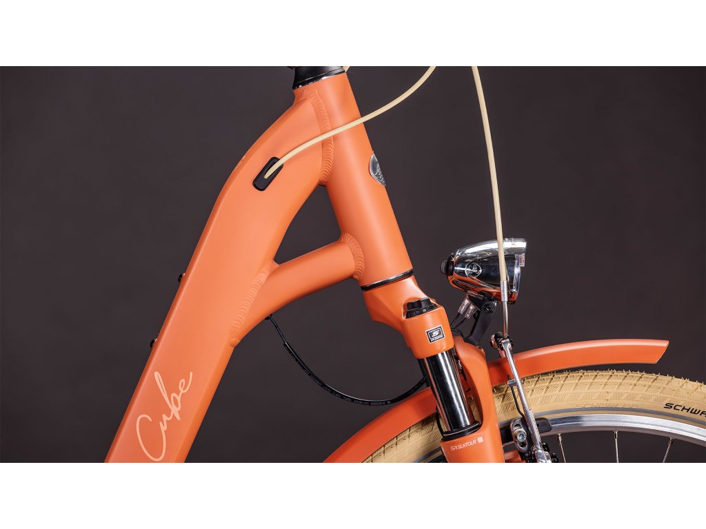 Štýlový vzhľad modelu Aruba je nepochybne súčasťou jeho príťažlivosti – je príjemný na pohľad a má náznak retro štýlu. Ale to, čo vás naozaj presvedčí, je spôsob, akým uľahčuje jazdu na dvoch kolesách. Elegantný a rafinovaný, spája v sebe nenútenú eleganciu s praktickosťou. Pohodlná jazda a bezpečná ovládateľnosť sú dôležitými súčasťami balíka a my sme vybrali 8-rýchlostné prevody Shimano pre ich spoľahlivosť a jednoduché použitie. Batožinový nosič, farebne označený kryt reťaze a odpružená vidlica dotvárajú vzhľad a my sme pridali aj dynamo-poháňané svetlá, blatníky a stojan – takže ste pripravení na akúkoľvek cestu. Mesto alebo vidiek, práca alebo zábava, je to všetko, čo potrebujete.